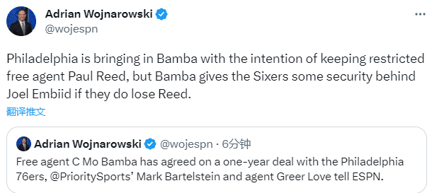 此前班巴被湖人裁掉,新赛季他1030万美元的年薪无保障,湖人裁掉班巴后有重新和他续约的计划,可如今湖人把目标锁定伍德和波尔-波尔,班巴则是决定加盟76人,费城引援班巴的原因是他们担忧受限制自由球员里德离队,若里德离队,班巴可以担任恩比德的替补。