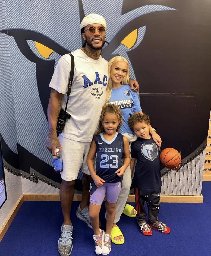178直播讯07月04日,灰熊新援德里克-罗斯正式宣布新赛季他将改穿灰熊队23号球衣,罗斯已经抵达孟菲斯,他一家四口合影,罗斯搂着爱妻,他的孩子则穿着灰熊23号。