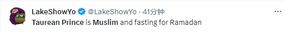 湖人和勇士的赛季三番战是在当地时间下午5点30分开打的,由于正在斋月禁食,普林斯在不吃不喝的情况下参加比赛,直到当地时间下午7点之后,普林斯终于可以吃东西了,他与教练组沟通后直接离场,返回更衣室补充体力。