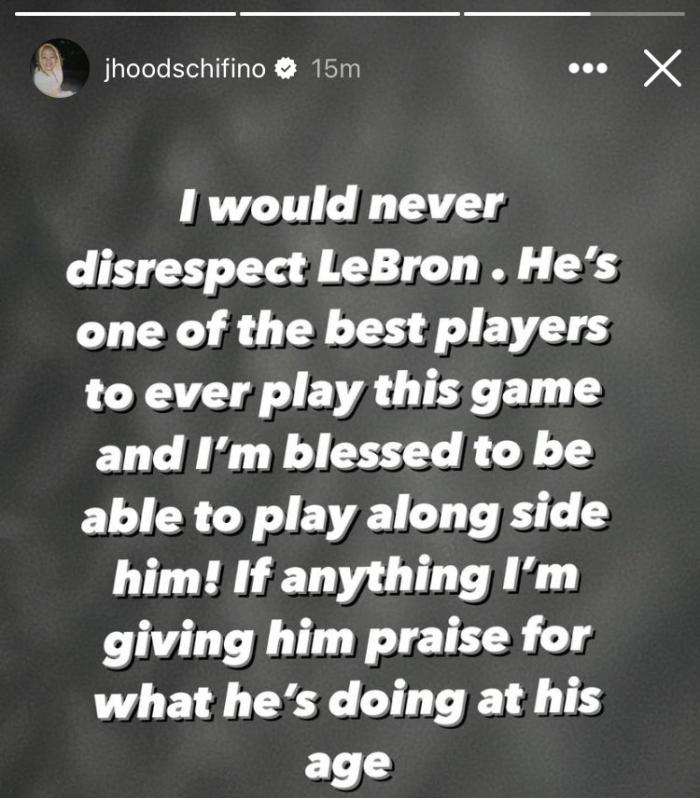 席菲诺更新社交媒体表示自己绝对没有不尊重詹姆斯的意思,公开澄清:我绝对不会不尊重勒布朗,他是历史最佳之一,能够做他的队友是我的荣幸!如果我这句话有任何意思的话,那就是在赞美他在这个年纪所做到的一切!