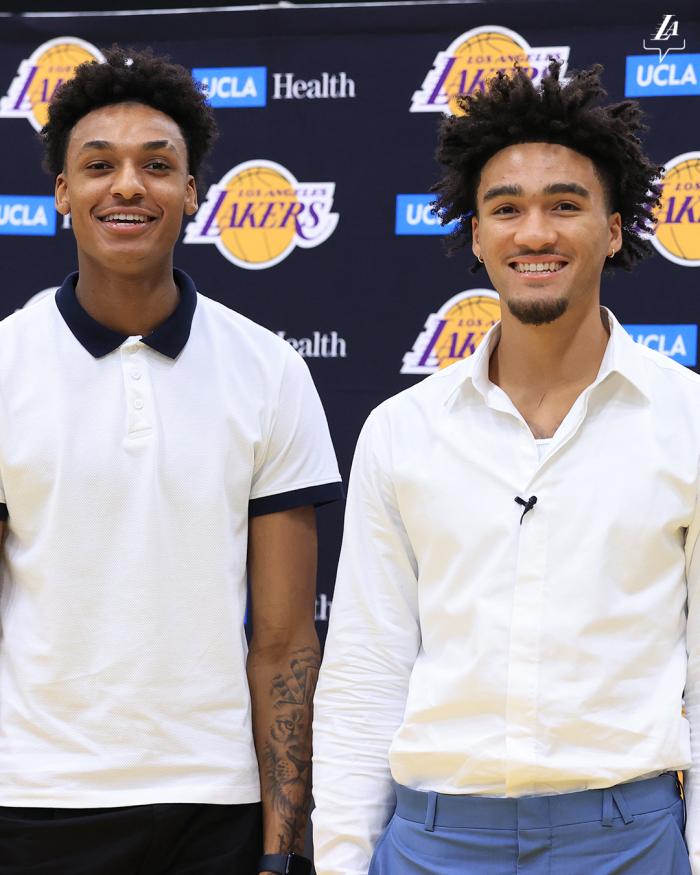 今日湖人两大新秀杰伦-胡德-席菲诺与马克斯韦尔-刘易斯正式亮相,17号秀席菲诺谈到自己出生后7天詹姆斯参加选秀,惊呼:天啊,勒布朗老了。