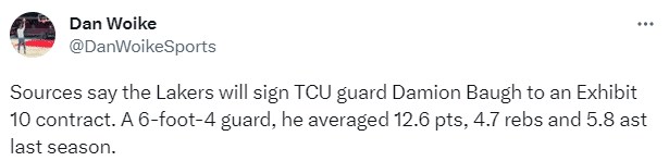 178直播讯06月25日,据湖人随队记者Dan Woike报道,湖人与落选后卫达米恩-鲍签下一份Exhibit-10合同;湖人捡漏再签一人打造夏联名单,克里斯蒂领衔8人夏联名单,众落选秀继续冲击NBA。