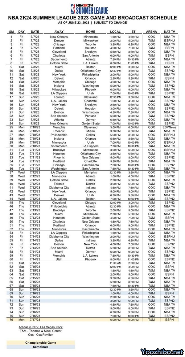 2023-24赛程NBA夏季联赛直播赛程表一览