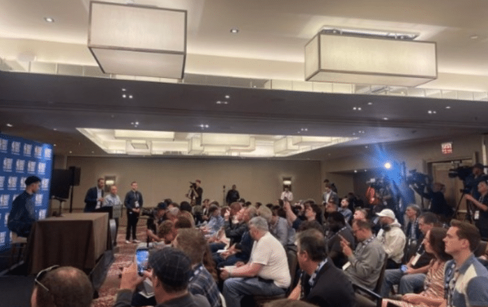 在选秀大会媒体日,文班亚马接受采访时人气爆棚,现场记者人山人海,马刺球员索汉来到现场并且提问了文班。