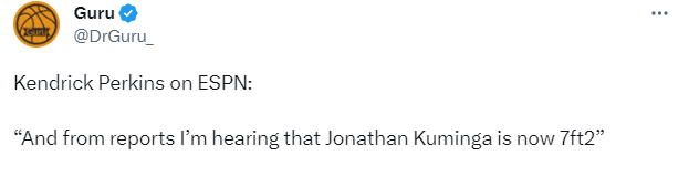 难道库明加真的长高了吗?医学专家Nirav Pandya表示,运动员完全有可能出现后期生长“突增”。从生理学角度来看,有些人可能在晚些时候会出现生长“板”闭合,虽然不太常见,但这是可能的。