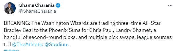 178直播06月19日讯 ,据名记shams和woj确认,太阳和奇才重磅大交易来了,太阳把保罗、沙梅特、一些二轮签和多个选秀互换权交易到奇才,得到比尔;新赛季比尔将联手杜兰特和布克冲击总冠军;名记揭秘内幕,太阳关键球员想要联手比尔,保罗换队多赚将近千万美元,不过这笔交易可能变成三方交易,最终保罗可能加盟快船。