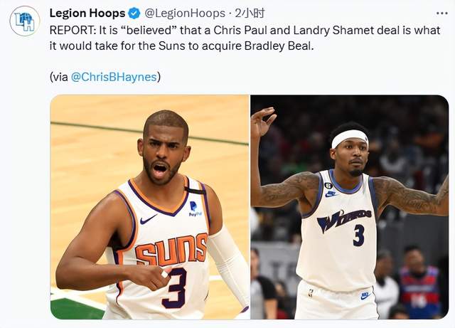 178直播讯06月18日,来自NBA名记Shams的报道,比尔争夺战进入决赛圈,奇才正在和决赛圈的两支队伍太阳和热火进行认真的谈判。太阳成为比尔的重大潜在下家,而且比尔手握交易否决权。此外根据名记Haynes报道,据信如果太阳奇才发生交易,保罗和沙梅特会成为比尔交易的一部分。