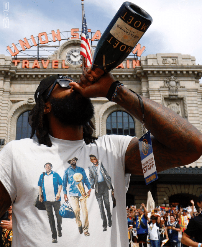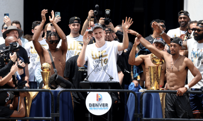 发表演讲时,约基奇这样说道:你们都知道我说过,我不想参加冠军游行,我想要回家。但现在我TMD就想留在游行之中,这就是最棒的,这种感觉太美妙了,这是我们一生中都会铭记的时刻,看到你们在街上欢呼我很开心,我爱你们,丹佛,这个冠军是为你赢下的(Denver. This one is for you)。