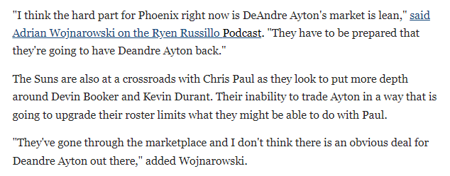 名记woj报道,太阳努力探索交易艾顿,但后者的交易市场惨淡,他们需要做好留下艾顿的准备,没有一笔明显的交易可以送走艾顿。