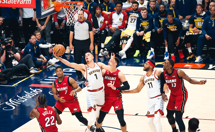 178直播06月13日NBA总决赛G5展开争夺,赛前掘金3-1领先,此役回到主场只要赢球就可以夺得冠军,热火到了悬崖边,输球赛季结束,只有赢球才能将系列赛拖回到主场。上半场背水一战的热火51-44领先掘金,阿德巴约爆发,裁判的判罚引发争议。