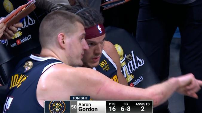 约基奇不能全功率,掘金要如何面对来势汹汹的热火呢?在比赛中,我们也多次看到了掘金队的约基奇搂着戈登面授机宜。而在约基奇的指点下,第一节拿到1分的戈登在第二节迎来了爆发,第二节戈登单节6中6拿到了15分,上半场拿到了16分3助攻,下半场戈登再一次入账11分,戈登的27分也成为今天掘金队赢球最大的功臣。