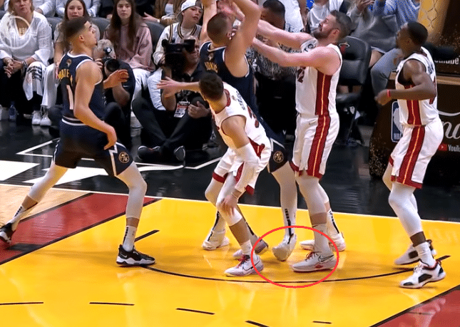 178直播06月10日,NBA总决赛掘金和热火G4正式打响,约基奇第一节不幸崴脚,绑紧鞋带忍痛坚持比赛;掘金和热火第一节打得十分激烈。