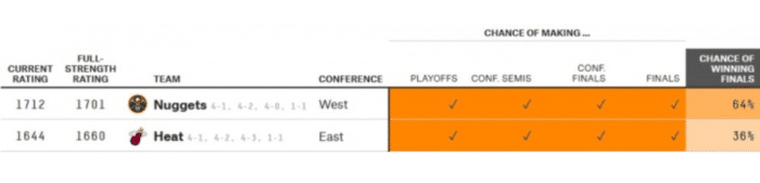 同时热火夺冠的概率从G1结束之后的17%,上升至36%,虽然依旧不如掘金,但数据暴涨,同时热火展现出了自己的韧性和战斗属性,还是令人非常兴奋的。这也让不少热火球迷高兴,毕竟今年的NBA季后赛,从第一轮到总决赛,他们一直都不被外界看好,但前三轮每次笑到最后的都是热火。如今来到总决赛的战场,扳成1-1平依旧被看衰,这也会激发热火更大的斗志。