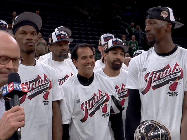 178直播讯05月30日,NBA东部冠军诞生,热火东决4-3淘汰凯尔特人,正式夺得东部冠军,与掘金会师总决赛争夺总冠军;巴特勒(5票)险胜马丁(4票),生涯首次夺得东决MVP,在东部冠军颁奖典礼上,莫宁为热火颁发东部冠军奖杯,阿德巴约高高举起东部冠军奖杯,巴特勒获MVP后十分淡定,在东部冠军合影中,巴特勒抱着MVP站在C位,阿德巴约抱着东部冠军奖杯,热火全队将直接飞往丹佛.