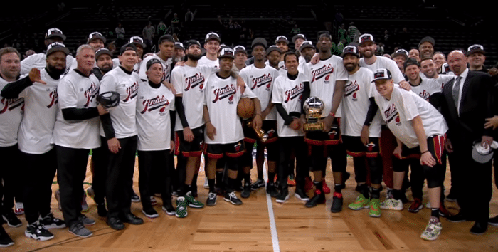 热火苦战七场淘汰凯尔特人,从3-0领先到连输三场被逼到抢七,抢七生死战,巴特勒和马丁带队打爆凯尔特人,带队晋级总决赛,拒绝成为史上第一支被3-0领先逆转的球队;热火众将将会直接从波士顿飞到丹佛。