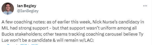 178直播05月27日NBA选帅最新进展来了,纳斯有望执教雄鹿和字母哥,太阳助教有望担任球队新帅,泰伦-卢留守快船继续执教小卡和乔治。