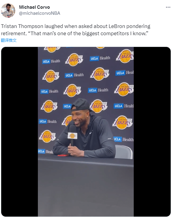 在湖人赛季总结会上,施罗德表示詹姆斯仍旧精力充沛,希望他再打几年;TT则笑着回应此事:勒布朗是我所认识的最伟大的竞争者之一,尽管我们被横扫了,但我们仍有机会回到属于我们的位置。