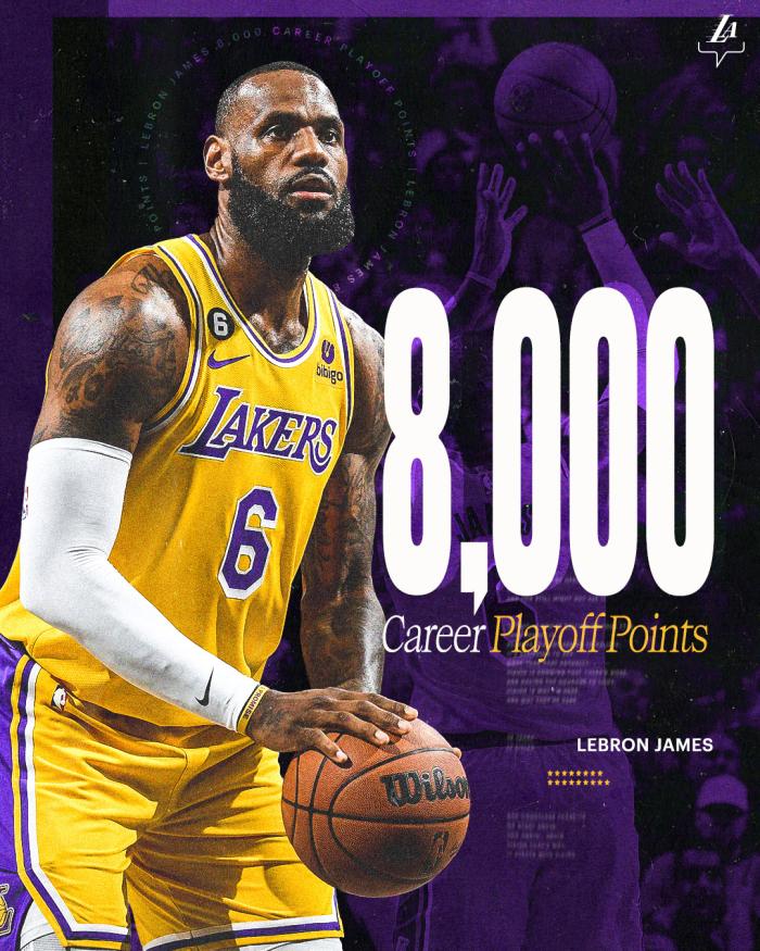 3、詹姆斯季后赛总得分突破8000分大关,继续刷新历史第一纪录