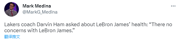 哈姆还表示詹姆斯的身体很健康,没有什么需要担忧的。