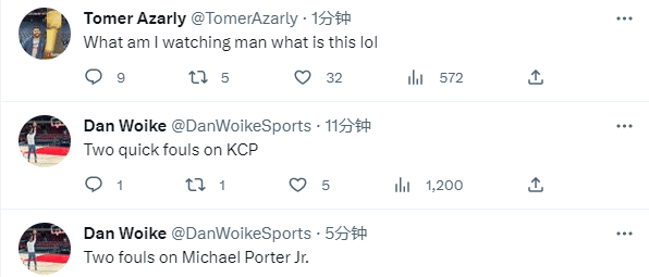 第一节裁判的吹罚引争议,波普开场仅仅只打了1分39秒,就因连续吃到两次犯规而无奈下场;之后范德比尔特禁区强投造小波特犯规,裁判延迟吹罚引波特不满;之后范德彪造小波特进攻犯规,掘金又一主力身背两犯被迫下场,首节上场4分34秒2分1篮板。