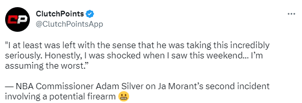 几天前,莫兰特又在直播中炫耀枪支,如此事件引众怒;灰熊官方第一时间宣布,禁止莫兰特参加球队的一切篮球活动,NBA官方也介入调查。