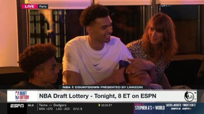 文班亚马才打完法甲联赛常规赛最后一战,全场轰下22分9篮板2盖帽,尽显天赋并且关键时刻双手暴扣终结比赛,因此他没有来到抽签现场,而是远程观看抽签仪式。