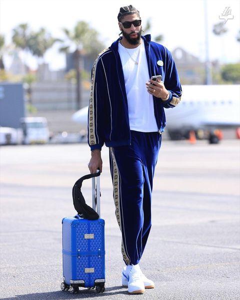 浓眉身穿深蓝色套装、戴着墨镜、拉着行李箱,边走路边刷手机,整个人的状态十分轻松;西决系列赛,浓眉和约基奇之间的对决将是一大看点;值得一提的是,2020年西决,湖人4-1轻松淘汰掘金,浓眉轰进不可思议的压哨绝杀三分。