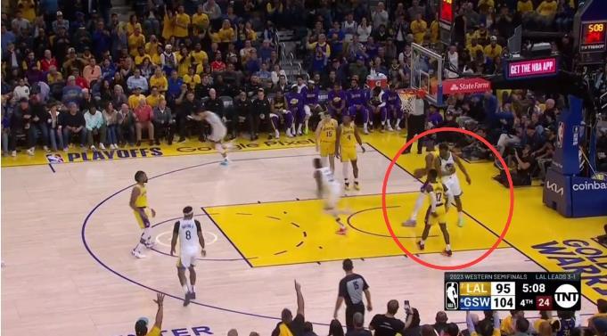 詹姆斯真的是故意肘击维金斯吗?通过把八倍的慢镜我们可以找到事情的真想。WOJ所谓詹姆斯撞倒维金斯肋骨的这一下是啥情况呢?比赛来到最后的5分09秒,库里顶着里弗斯的防守投篮,而此时詹姆斯卡位抢篮板,詹姆斯的背后一开始是格林,而维金斯是从另一侧跑过来的。当库里出手后,詹姆斯发力试图用身体卡住格林,而此时的维金斯正好从后面跑过来,发力的詹姆斯正好撞倒了维金斯的侧身。从这个慢镜头,我们可以很清晰的看到,当詹姆斯发力的时候,他知道自己背后有格林,但是他根本不知道背后还有半路杀来的维金斯,所以这个球,詹姆斯不可能是故意要肘击维金斯的。