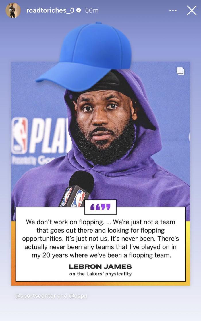 对于詹姆斯从不假摔的言论,勇士悍将贾麦考-格林转发并且配上一大顶蓝色帽子表情,嘲讽詹姆斯说谎。