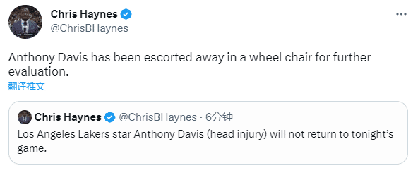 据名记克里斯-海耶斯报道,浓眉因伤早早退出比赛,坐着轮椅离开。