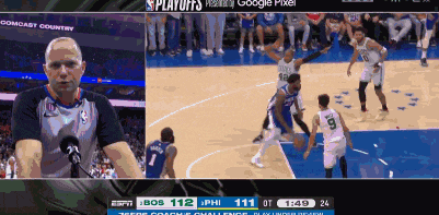 这场比赛加时赛的最后时刻,出现了两个较大的争议画面。第一是恩比德2+1打成,但裁判吹罚进攻犯规。76人挑战,裁判维持原判。而裁判报告解释,斯玛特处于合法的防守位置,再次强调恩比德进攻犯规没有问题。但相似的一幕出现在湖人G3,浓眉撞倒追梦格林造成后者第4犯,当时裁判吹罚格林防守犯规。