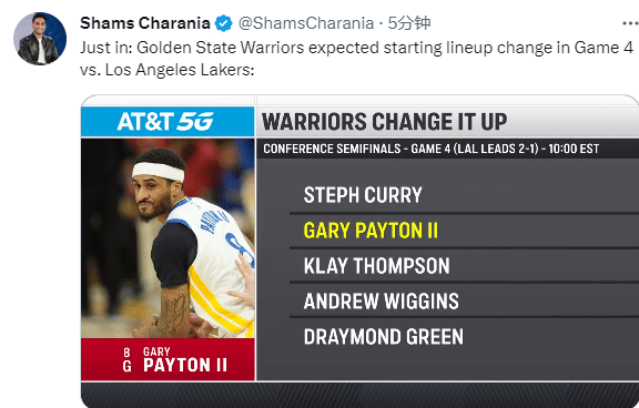 178直播05月09日,据名记shams报道,勇士预计将在半决赛G4大变阵,小佩顿将顶替贾麦考-格林进入首发,搭档库里、汤普森、格林和维金斯首发出战,换言之,科尔将会祭出死亡五小。