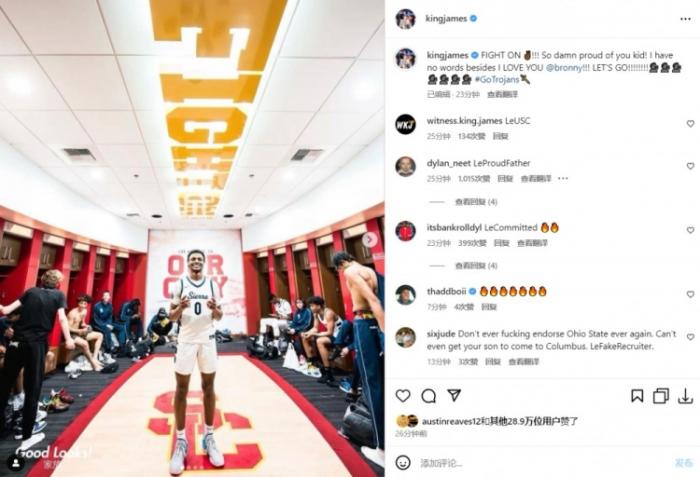 詹姆斯还回应布朗尼决定加盟南加州大学,表示:今天是我人生中最美好的日子之一,因为布朗尼承诺加盟南加州大学。看到我家有人上大学,我感到非常自豪。他是我们家第一个上大学的人。