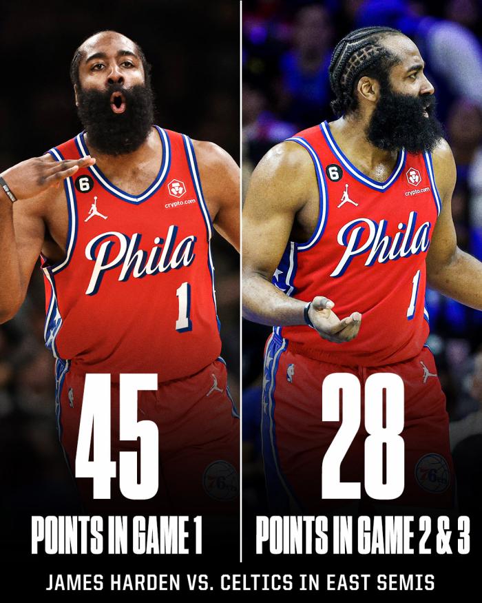 76人G2惨败34分,哈登全场14投2中拿到12分10篮板4助攻;G3回到主场仍旧输球,哈登全场14投3中,三分7中2拿到16分6篮板10助攻5失误,失误比进球还多;哈登因糟糕表现又冲上推特热搜榜,惨遭狠批又被骂惨了。