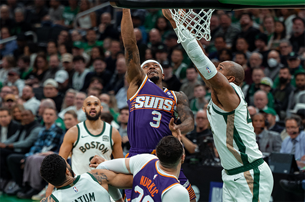 北京时间3月15日,NBA常规赛结束一场强强对决,凯尔特人127-112击败太阳,双方本赛季两次交手,凯尔特人双杀太阳。这场比赛双方都是三巨头对决,太阳的布克、杜兰特和比尔,凯尔特人的塔图姆、布朗和霍乐迪,最终凯尔特人取得胜利,全场三分球50中25。塔图姆轰下26分,杰伦布朗得到37分5篮板,霍福德24分。太阳的杜兰特20分,比尔22分3篮板7助攻,布克23分。