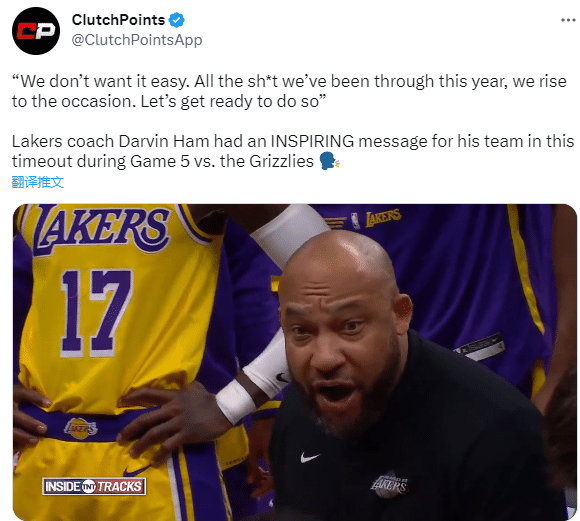 下半场,拉塞尔开场连得8分助湖人8-0打停灰熊,莫兰特带队强势回应,之后詹姆斯在进攻端发力,连续杀到禁区得分,外线三分终于开张,连得9分带队又追到1分,可之后湖人被打19-2瞬间落后到18分,湖人全队4分30秒仅仅拿到2分,瞬间崩盘。
