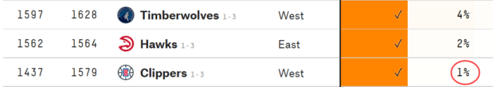 178直播讯04月26日,NBA安排了三场季后赛大战,快船、老鹰、森林狼都面临1-3的绝境,其中,快船最不被看好。知名数据网站FiveThirtyEight列出了三队的晋级概率,森林狼4%,老鹰2%,快船最被看衰,只有1%。乔治和莱昂纳德将继续因伤缺席G5的比赛,而在赛前,乔治接受了记者采访,把莱昂纳德称为“战士”,希望威少下赛季能继续留在快船。