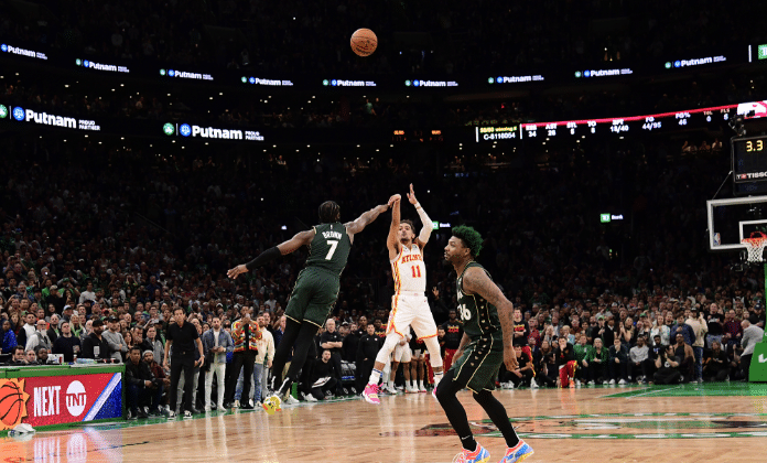 特雷杨连续三分球、稳定罚球、准绝杀三分,率队掀翻凯尔特人,他末节砍下16分,全场下来特雷杨轰下38分13助攻外加4篮板2抢断,正负值+5,其中38分是全场最高分,表现极其出色。