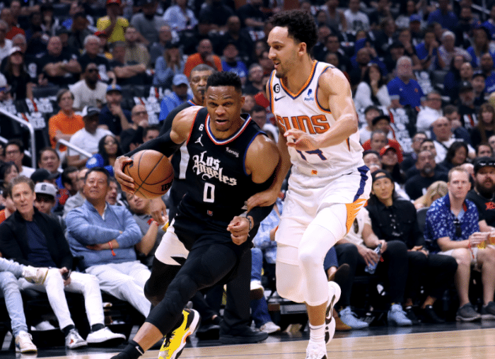 下半场,威少第三节开场带队9-0,随后布克和保罗带队追分,杜兰特上场后外线再中三分,招牌中投太无解,外线又中三分,单节独砍12分;威少则是单节10分,一个人扛着球队,大战太阳四巨头。