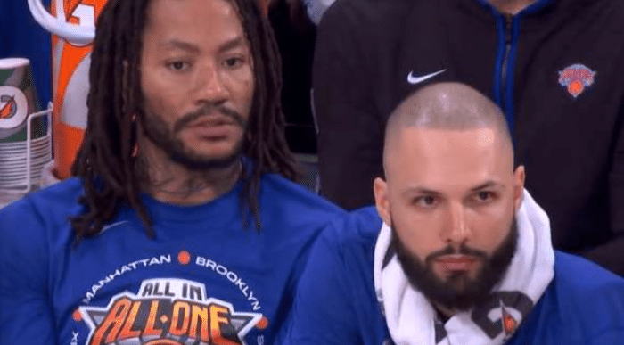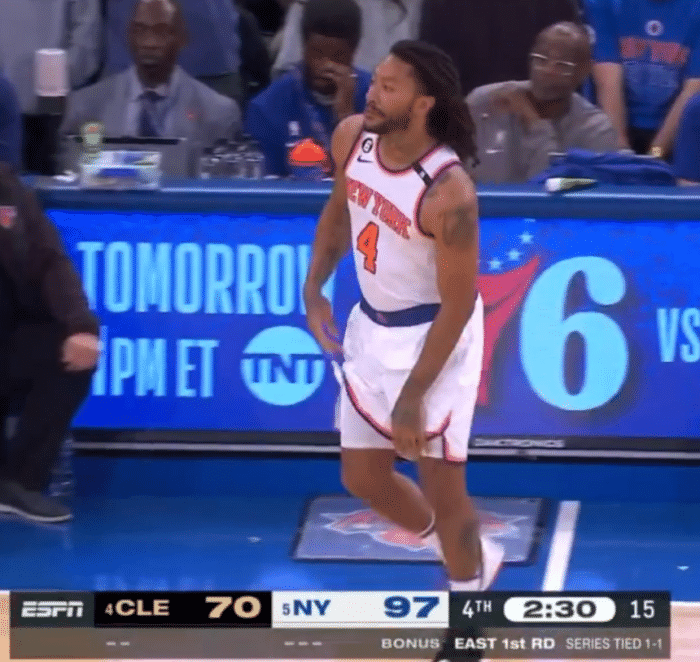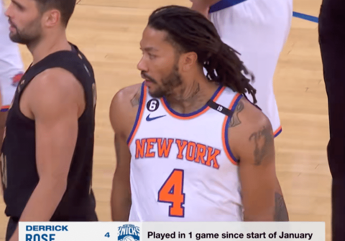 罗斯时隔将近2个月终于再次获得上场机会,上一次出战是在2月26日常规赛尼克斯对阵鹈鹕的比赛中,而今天34岁罗斯在全场球迷的呼喊下被换上场,罗斯持球,全场球迷欢呼呐喊,队友全都把球给他,全队都想让罗斯得分,可惜四次尝试出手都没能命中,助攻托平空接暴扣,替补上场2分30秒,4投0中0分0篮板1助攻。