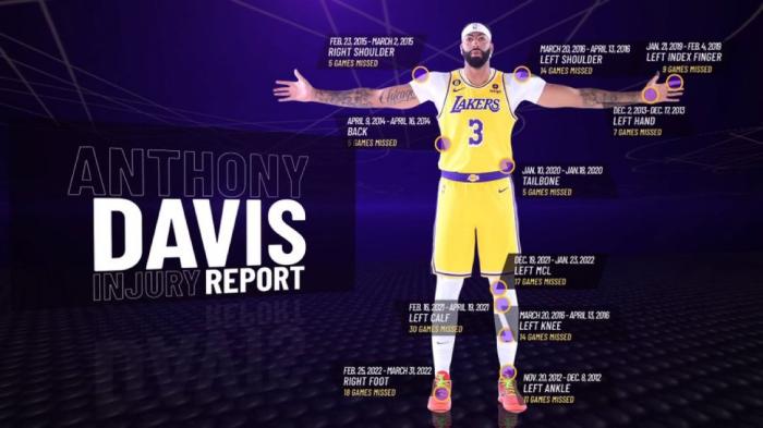 暂停期间,转播方列为浓眉生涯至今遭遇的各种伤病。