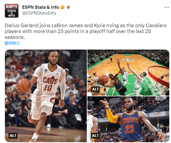 1、加兰半场26分,比肩詹姆斯和欧文成为骑士队史近25年第三位季后赛半场至少25分球员