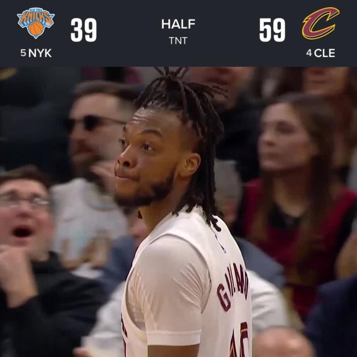 第二节,加兰外线手感依旧滚烫,空位三分以及追分三分,带队13-4拉开分差;之后加兰连投带罚继续得分,骑士单节34-17打爆尼克斯,半场打完骑士领先20分,加兰半场高效轰下26分。