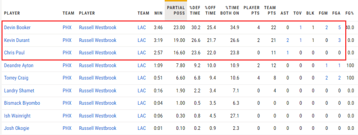 根据NBA官方数据统计,在快船和太阳G1比赛中,威少防守杜兰特3分19秒,19个回合KD3投0中,仅靠罚球拿到2分;威少防守布克3分46秒,23个回合,布克5投2中仅4分;威少防守保罗2分57秒,后者未出手;威少总共防守太阳三巨头59个回合,杜兰特、布克和保罗累计8投2中仅拿到6分,投篮命中率仅仅只有25%。