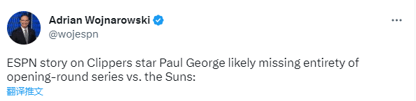 自从3月22日在对阵雷霆的比赛中不幸扭伤膝盖后,乔治缺席至今,养伤将近一个月仍旧未接近复出,据两大名记报道,乔治很可能因伤缺席季后赛首轮全部比赛。
