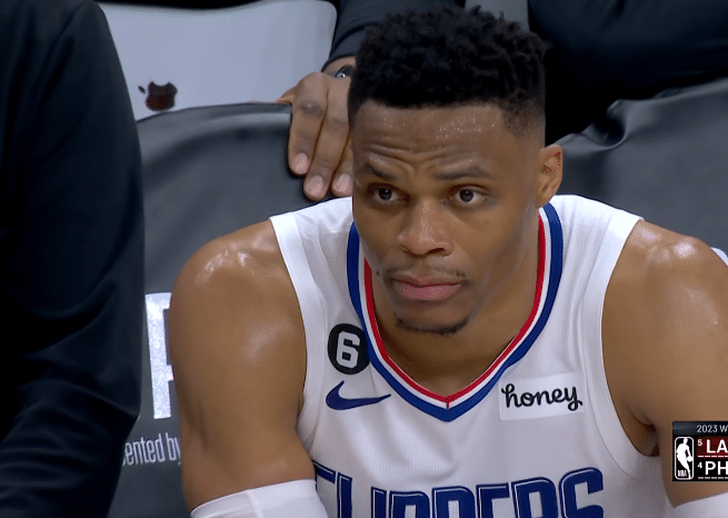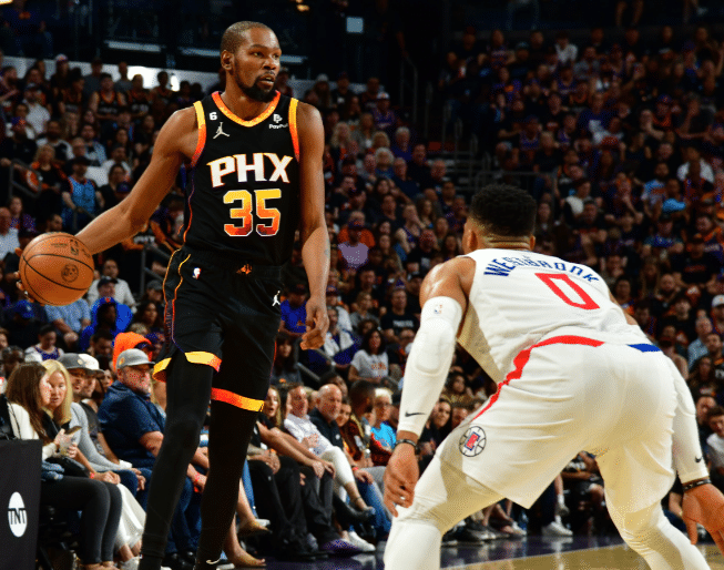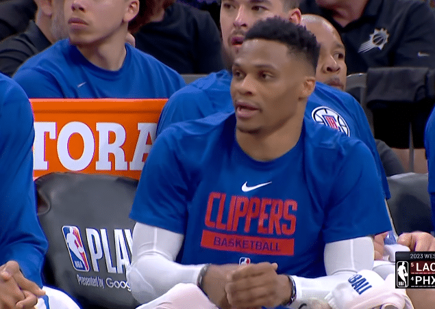 第一节5分18秒,杜兰特持球急停干拔,威少从背后大帽杜兰特;3分多钟,威少防杜兰特接球,两人先是发生身体接触,布克吊球后威少抢球撞倒杜兰特吃到犯规,威少下场休息,第一节上场8分钟5投0中0分2篮板1助攻,杜兰特的状态也糟糕,首节4投0中0分1篮板1助攻。