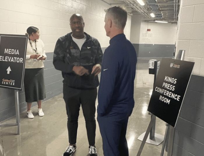 值得一提的是,科尔赛前偶遇国王主帅迈克-布朗,两人有说有笑聊起来;据统计,自科尔执教勇士以来,他们在季后赛系列赛G1的战绩为21胜3负;这也是科尔时代以来勇士第4个没有主场优势的系列赛,此前3个系列赛战绩为2胜1负。