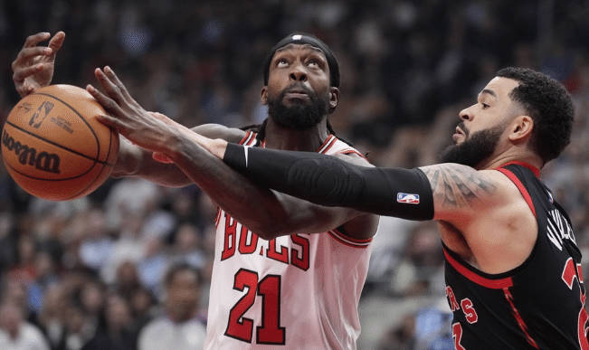 范弗利特的三分球依旧不中,西亚卡姆关键罚球全丢,拉文的罚球把握住机会,公牛拿下胜利,逆转淘汰猛龙。