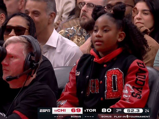 值得一提的是,第二节铂尔特尔罚球时,德罗赞的女儿高声尖叫干扰,他的女儿确实尽力了;之后范弗利特等猛龙球员罚球时,德罗赞女儿仍全力干扰。
