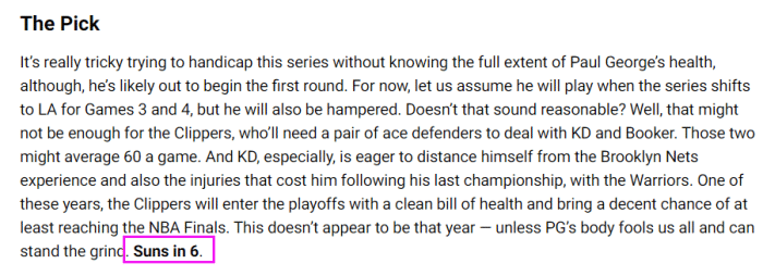 NBA官网预测,在不知道乔治何时复出的情况下,太阳将在首轮4-2淘汰快船。